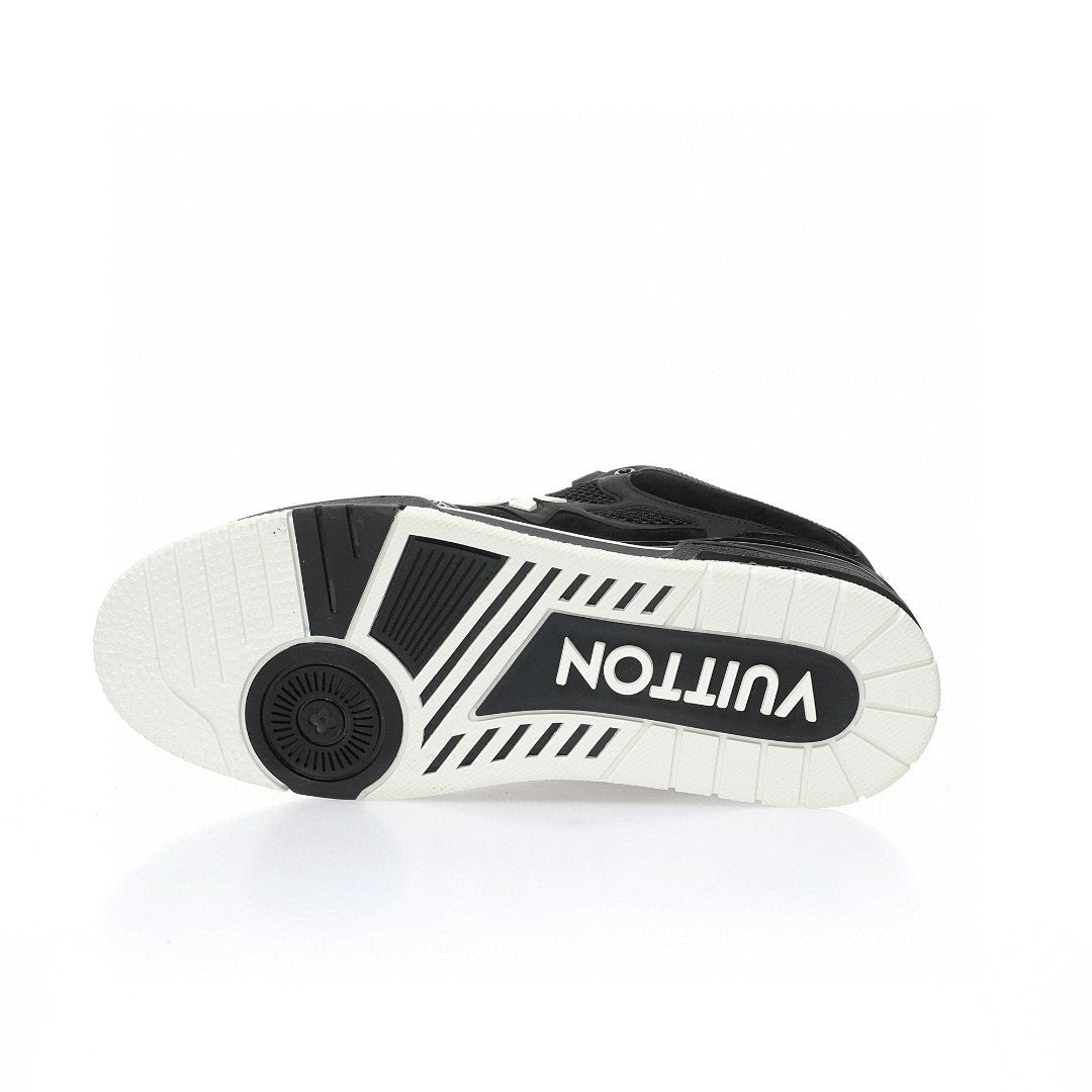 Design e materiali: La tomaia è realizzata in pelle di vitello martellata, spesso combinata con mesh o pelle goffrata effetto pitone, a seconda del modello. Presenta una grande Monogram Flower sul lato e il logo "Vuitton since 1854" sul retro.