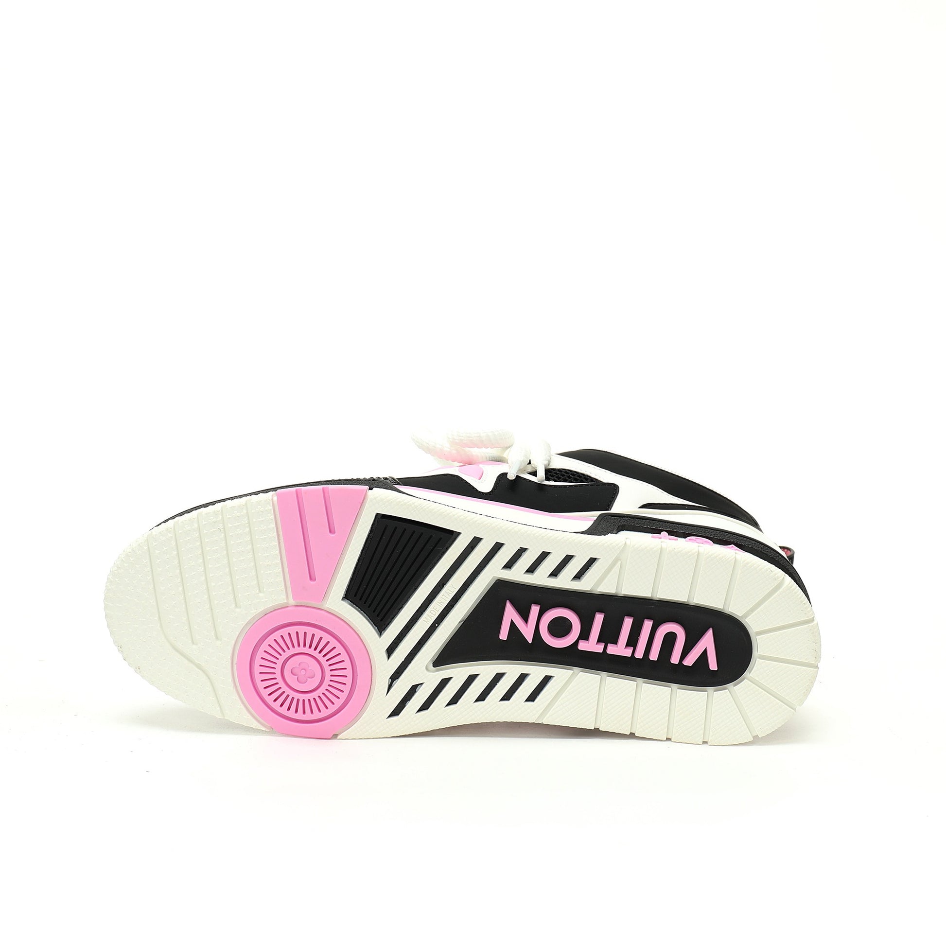 Suola: Suola in gomma bicolore con motivi Monogram Flower, derivata dal modello LV Trainer, garantisce aderenza e durata.